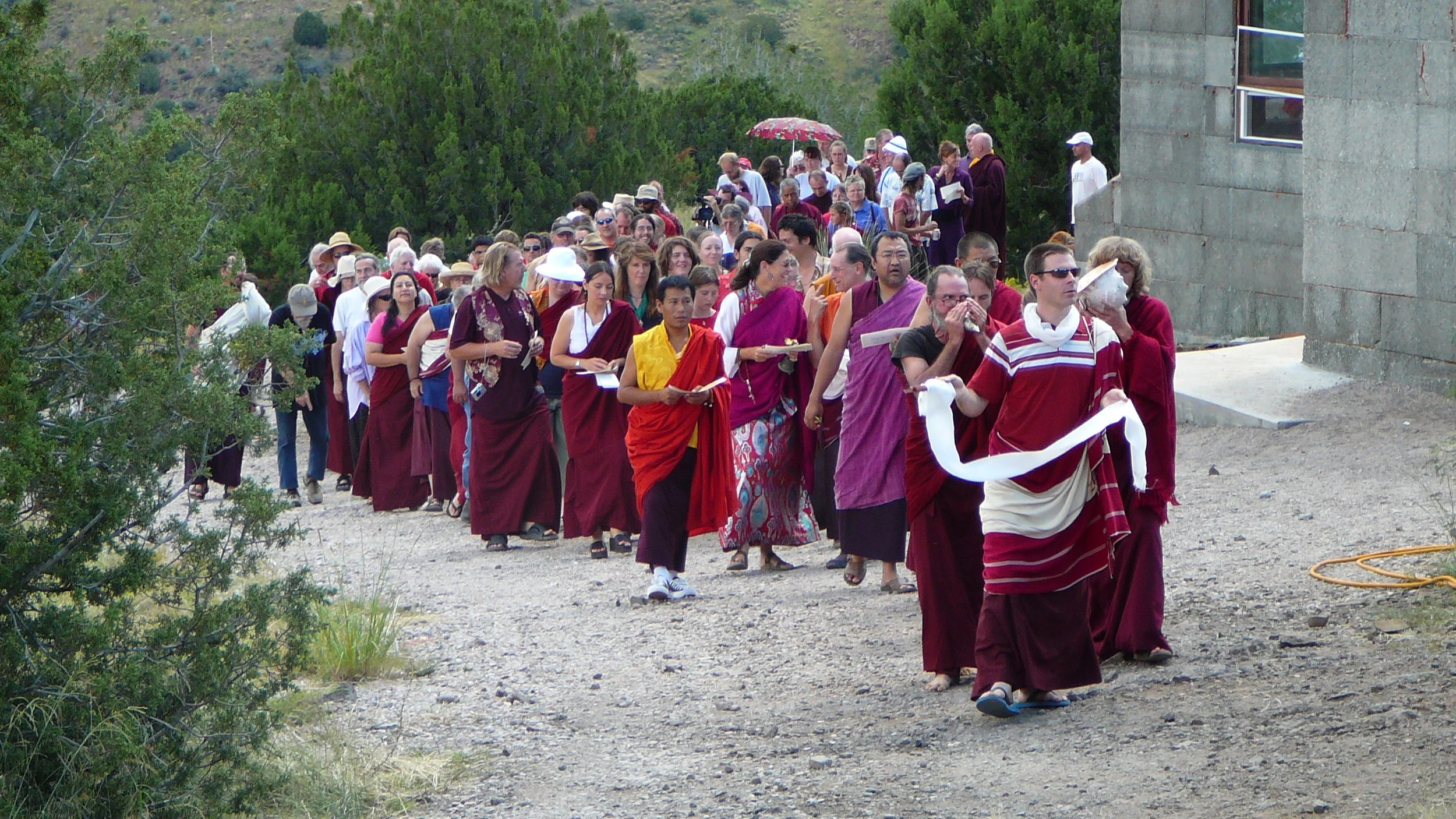 Eight days a month, on special holy days, during certain extended retreats, and on auspicious occasions such as the blessing and consecration of sacred representations of enlightened body, speech, and mind, we do extensive ceremonies for the benefit of all beings. If you would like to make a one-time or regular contribution on one or more of these occasions and dedicate it to friends or relatives, living or deceased, we will read your dedication aloud in the course of the ceremony. At any time, you may add someone's name to our prayer list. There is one list for prayers for removal of obstacles and another for those who have died in the past 49 days.